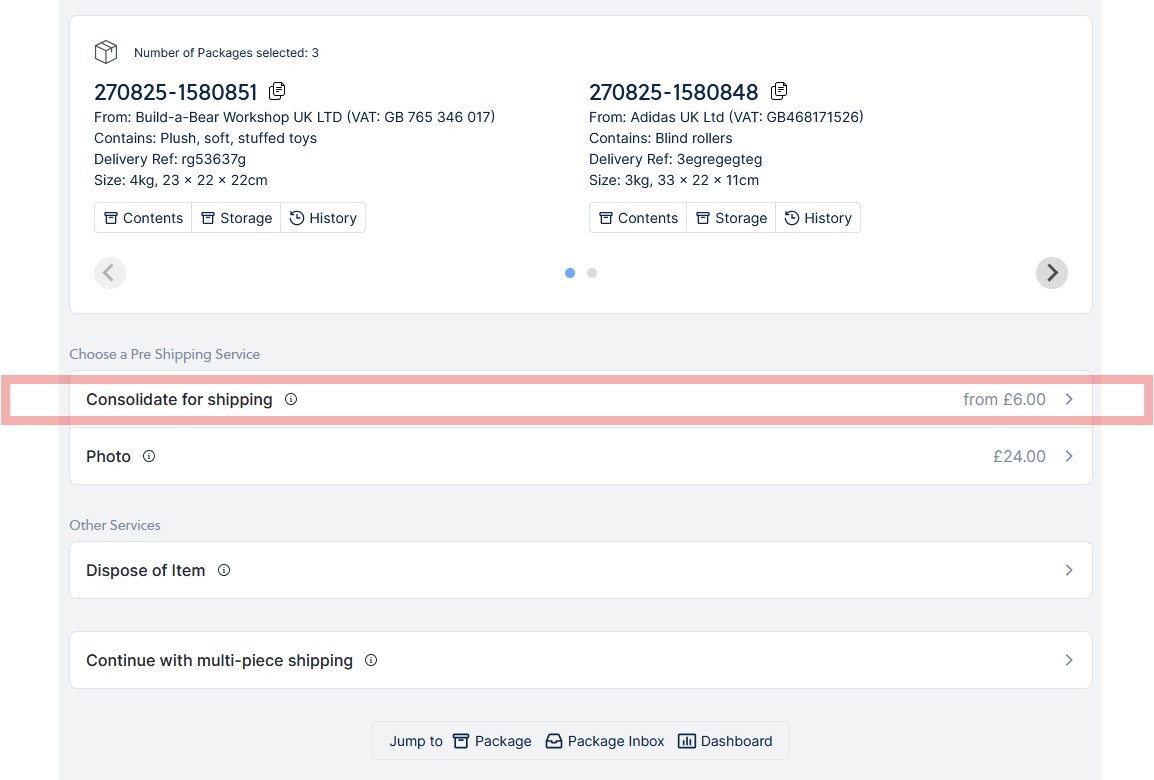 If you have multiple packages in your Inbox, you can now order a service for multiple packages in one go.